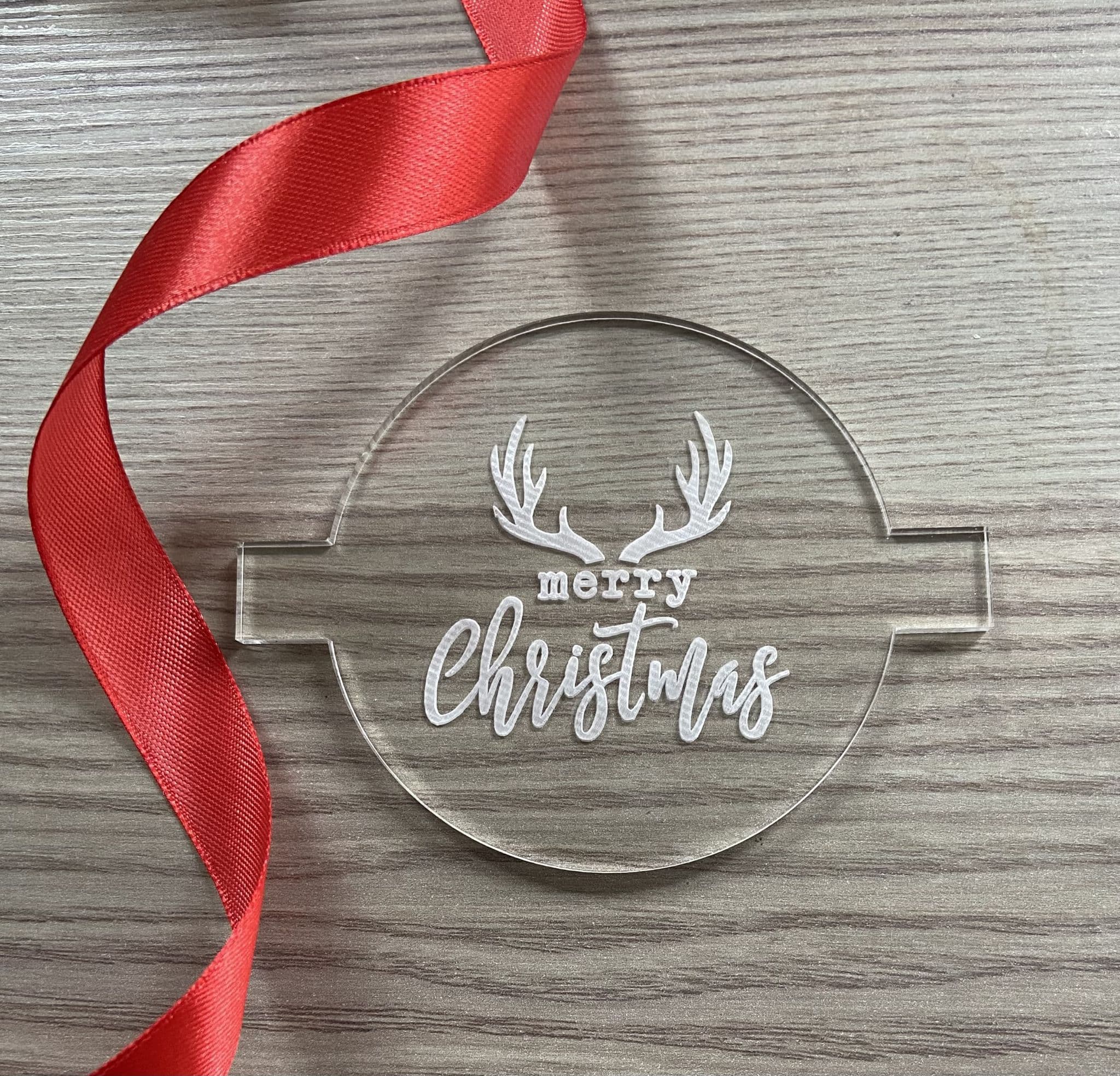 Our merry christmas with antlers debossers are made from acrylic, they measure 80mm diameter with the image inside measuring approximately 50mm.